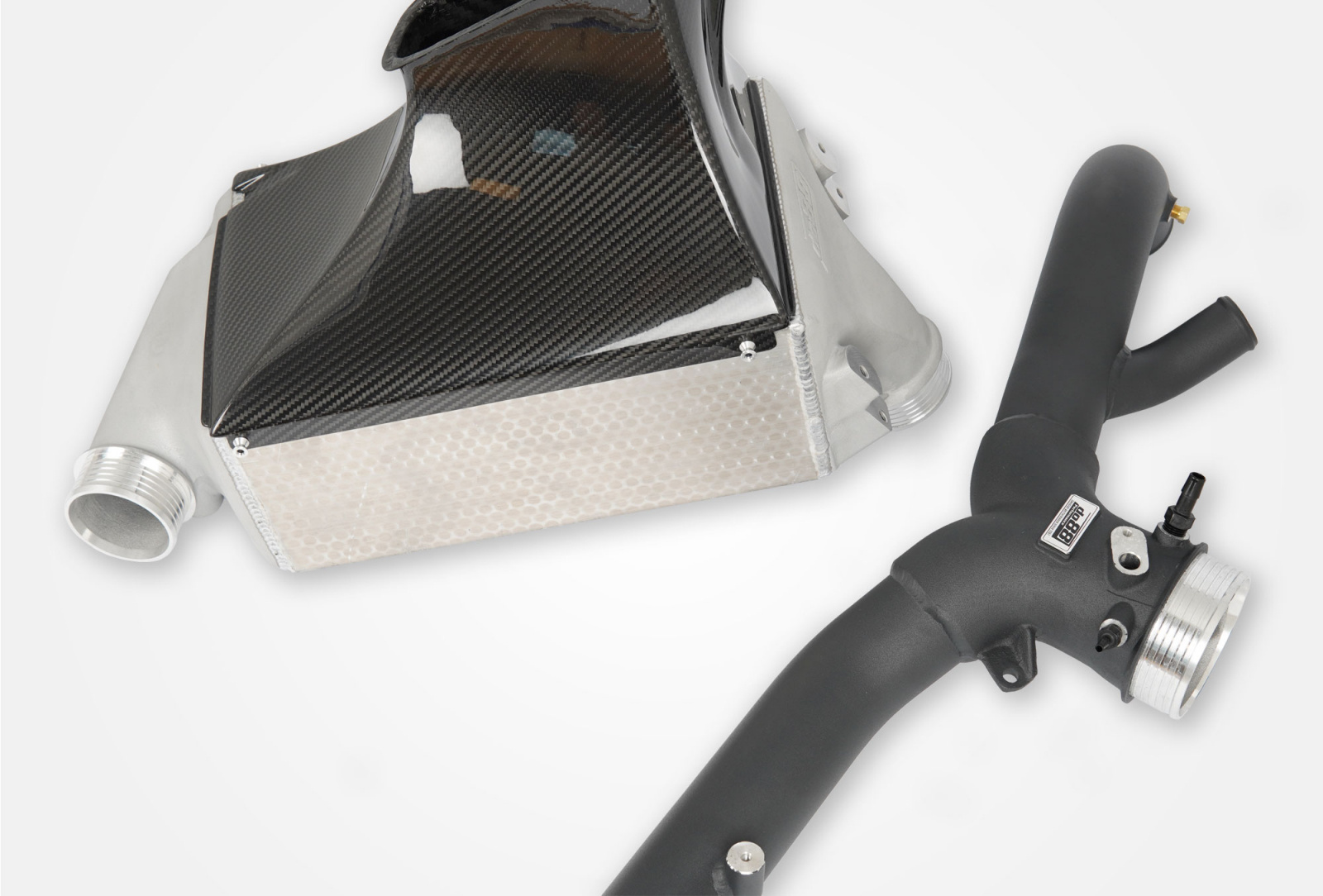 Cet ensemble est proposé à un prix avantageux et comprend nos refroidisseurs d'air de suralimentation, notre Y-pipe à haut débit, ainsi que toutes les durites, accessoires et détails de montage nécessaires.