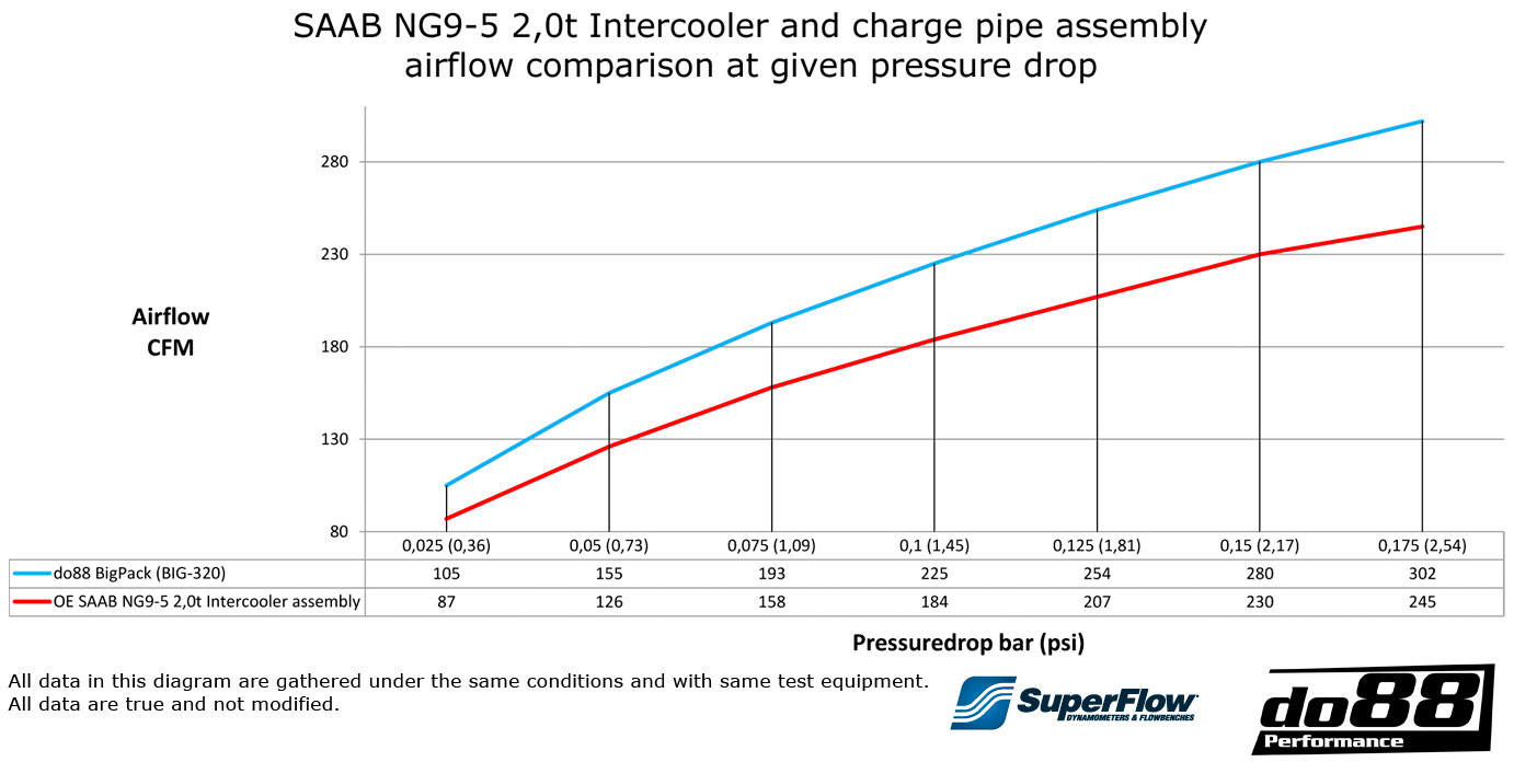 Il est concevable que l’intercooler d’origine avec les turbo tuyauterie associés aient été conçus pour l'effet de la voiture dans sa version originale. Lorsque l’effet est augmentée ou lorsque la voiture est très utilisée dans sa version originale, sa performance n'est plus suffisante. Donc, déjà à une pression de charge accrue /mise à niveau/écaillage de logiciels, notre BigPack offrira des performances améliorées!