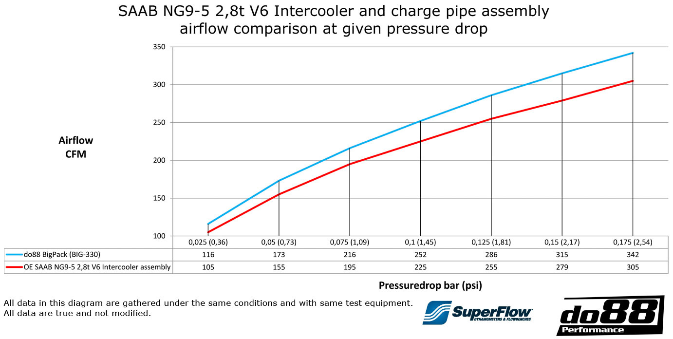 Il est concevable que l’intercooler d’origine avec les turbo tuyauterie associés aient été conçus pour l'effet de la voiture dans sa version originale. Lorsque l’effet est augmentée ou lorsque la voiture est très utilisée dans sa version originale, sa performance n'est plus suffisante. Donc, déjà à une pression de charge accrue /mise à niveau/écaillage de logiciels, notre BigPack offrira des performances améliorées!