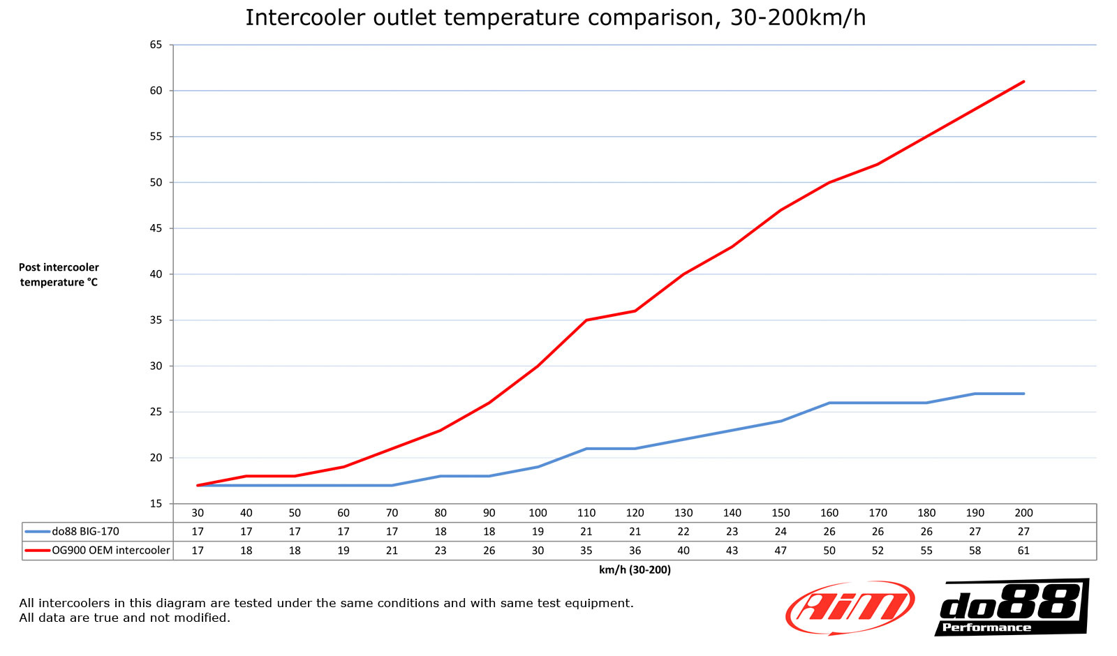Il est concevable que l’intercooler d’origine avec les turbo tuyauterie associés aient été conçus pour l'effet de la voiture dans sa version originale. Lorsque l’effet est augmentée ou lorsque la voiture est très utilisée dans sa version originale, sa performance n'est plus suffisante. Donc, déjà à une pression de charge accrue /mise à niveau/écaillage de logiciels, notre paquet intercooler offrira des performances améliorées!