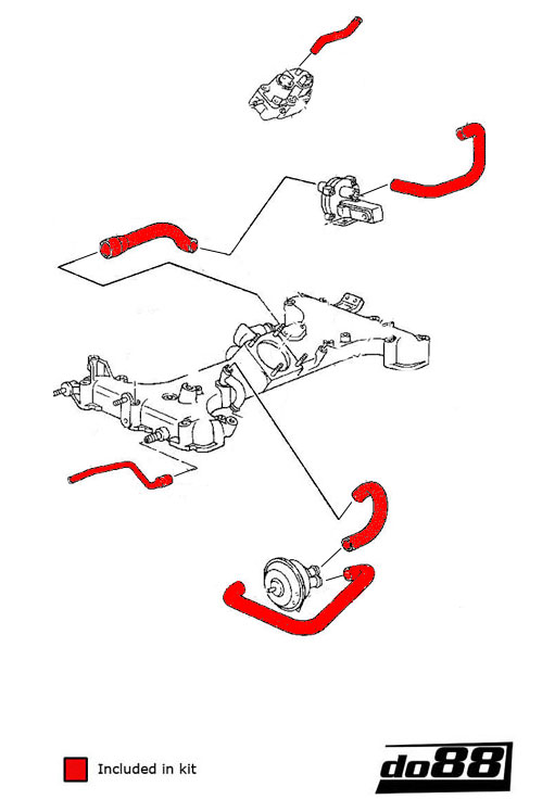Un kit durites développé de do88 qui remplace des durites d’origine au de soupape d'air auxiliaire et à la cloche à vide sous l’admission!