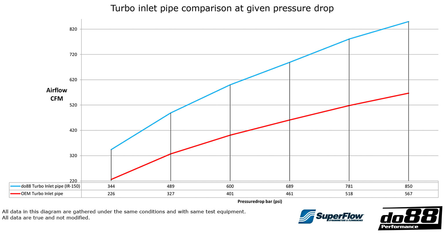 Les tubes d'admission do88 ont un débit d'air à une baisse de pression de 0,125 bar de 781 CFM, par rapport au tube original de 518 CFM!