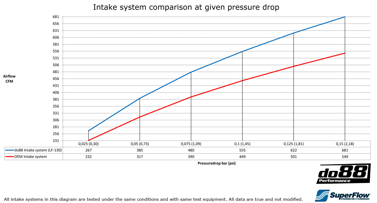 - Débit d’air 24% supérieur à celui des OEM. Vérifié dans notre propre SuperFlow SF-1020 banc de flux